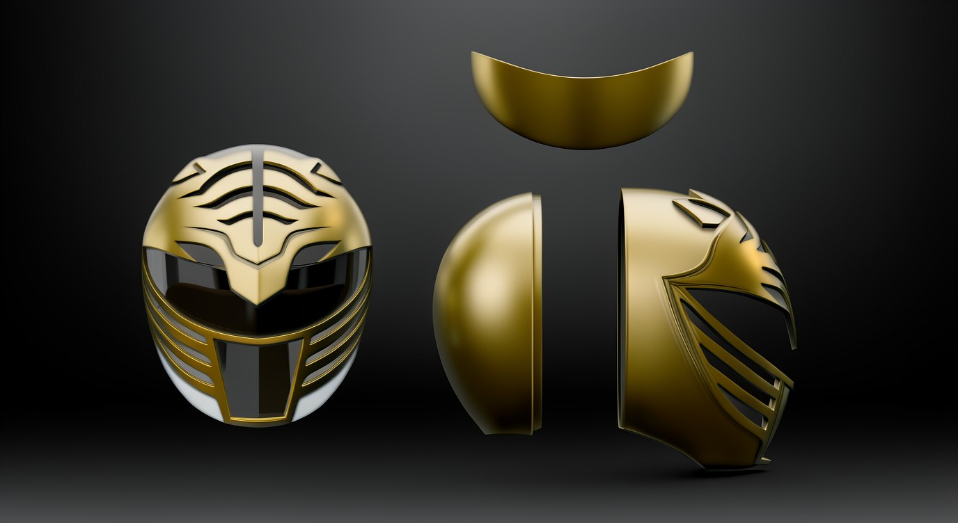 Cosplay STL Files White and Gold Ranger Helmet Mighty Morphin Power Rangers: Comprehensive STL Pack for Cosplay 3D Printing