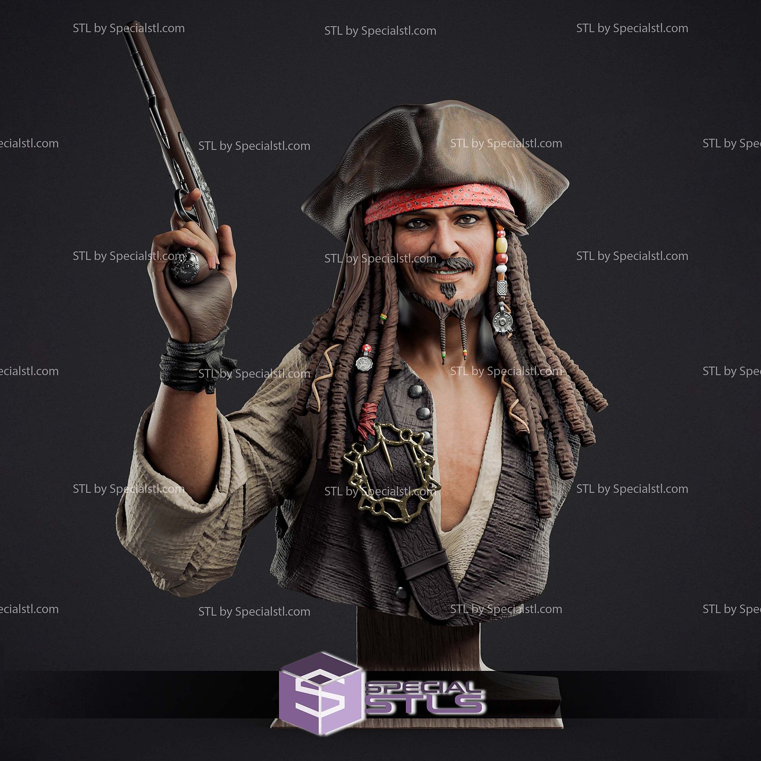 Jack Sparrow Gun Bust 154mm STL Files for 3D Printing is a premium collection of STL files carefully optimized for SLA/SLS (resin) 3D printers. Each file is oriented in the best possible position to ensure excellent surface quality and hassle-free printing, making it suitable even for newcomers. The figurine is provided in STL/OBJ formats, fully compatible with most 3D printers, and verified to be free of errors using Netfabb.