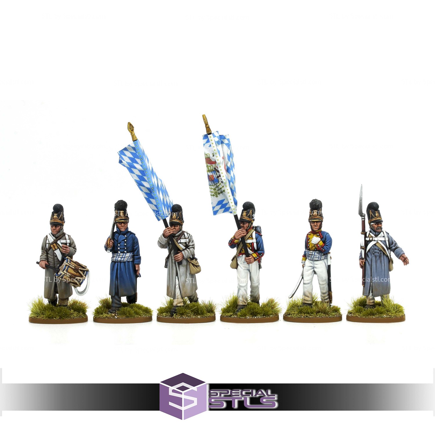 Napoleonic Bavarian Line Infantry Command Greatcoats 28mm Miniatures for 3D Printing is a high-quality pack of STL files designed for SLA/SLS (resin) 3D printers. These files are prepared in recommended orientations to ensure smooth surface details and easier printing, even for beginners. The figurine is available in STL/OBJ formats, widely compatible with most 3D printers, and has been verified to be error-free using Netfabb.