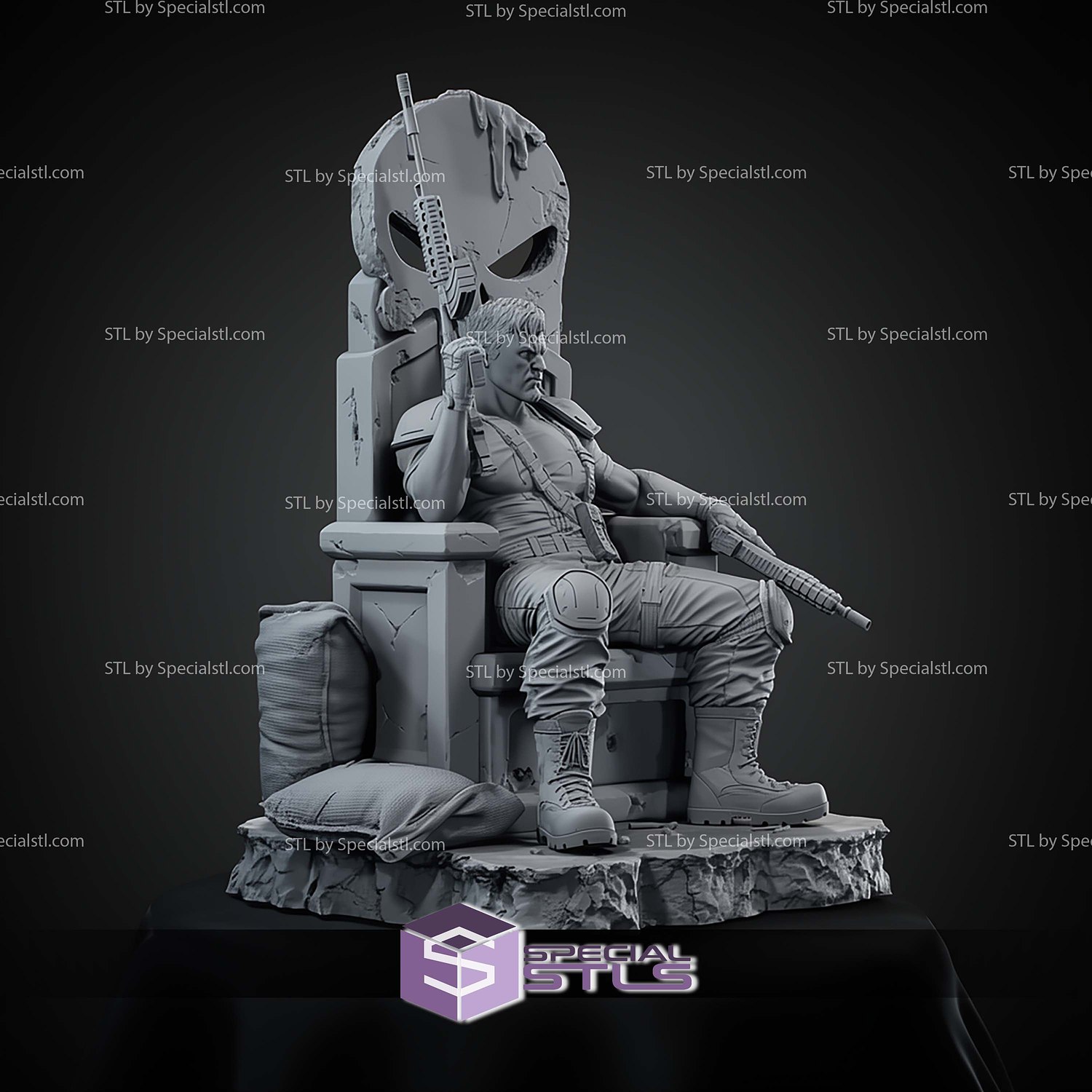 Punisher on Throne STL Files is a premium collection of STL files carefully optimized for SLA/SLS (resin) 3D printers. Each file is oriented in the best possible position to ensure excellent surface quality and hassle-free printing, making it suitable even for newcomers. The figurine is provided in STL/OBJ formats, fully compatible with most 3D printers, and verified to be free of errors using Netfabb.